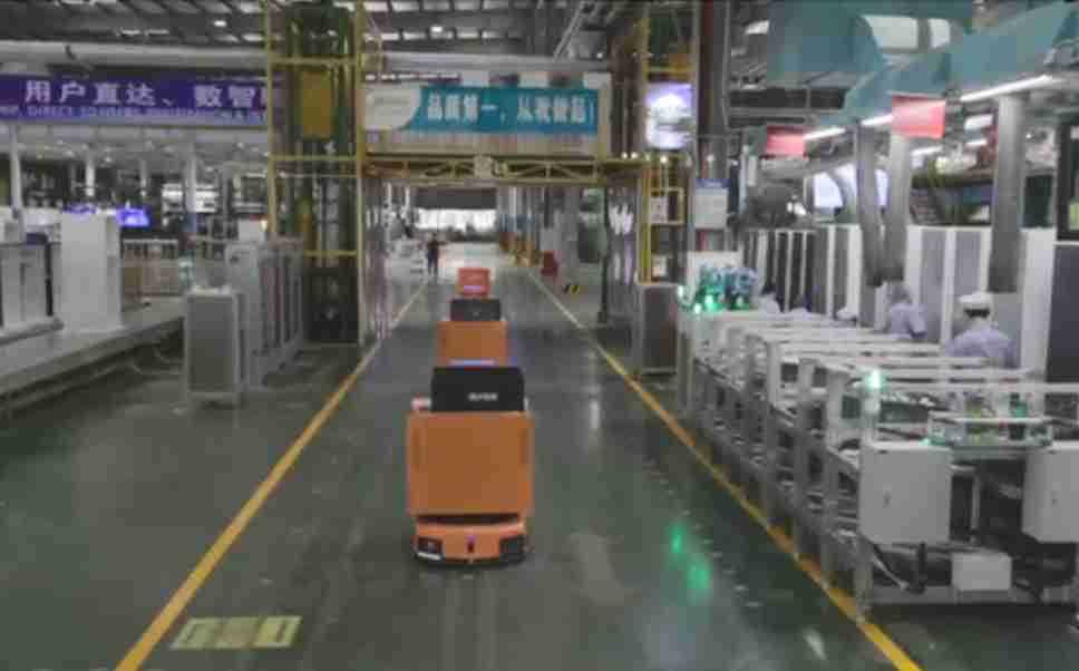 为车载冰箱物流配送打造的智能解决方案,,,包含产中物流通过潜伏举升AMR搬运至线边,,,产后成品物流智能仓储,,流程包含产中物流智能齐套入库,,线边安灯叫料AMR智能配送至线边,,,成品入库、、、出库,,,通过无人堆高车机器人,,,,智能仓储管理替代人工作业管理,,,实现更高存储、、更高效率、、、更具柔性化的解决方案。。